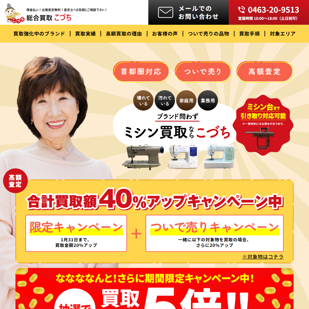 - 買取金額40%アップキャンペーン実施中!お得に古いミシンを処分できる